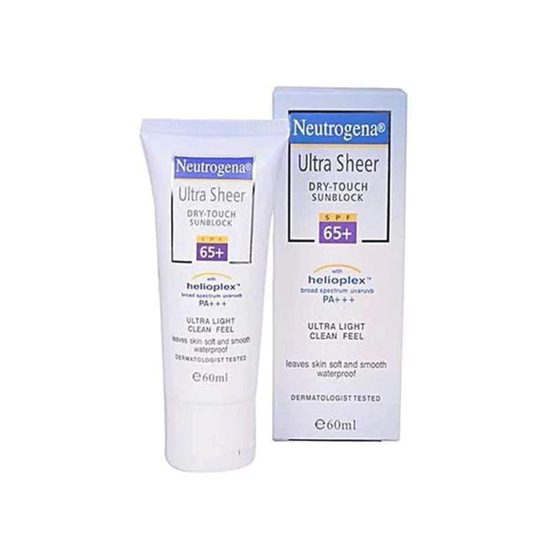 Neutrogena Ultra Sheer Dry-Touch Sunblock SPF 65+ is a lightweight, oil-free sunscreen designed to provide broad-spectrum protection against both UVA and UVB rays. Its advanced Helioplex® technology ensures effective sun defense, while the dry-touch formula leaves a matte finish, making it suitable for daily use under makeup.
